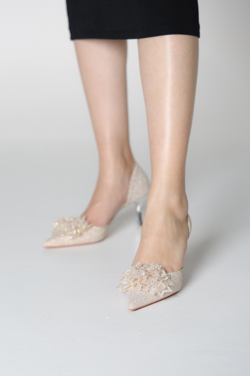 مزين بوردة فاخرة من الخرز والكريستال على مقدمة الحذاء