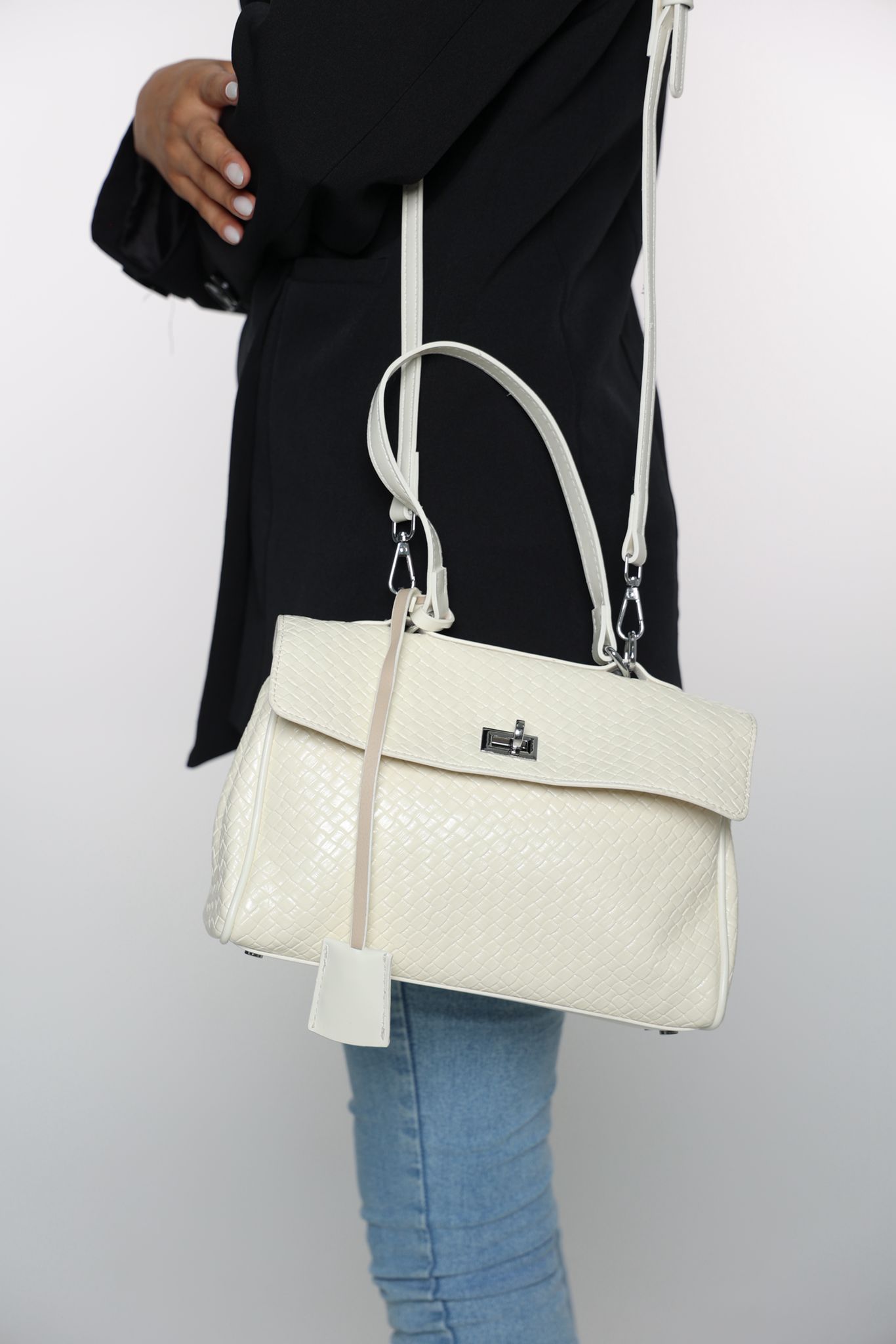 شنطه باللون الاوف وايت بقاعده 26 سم