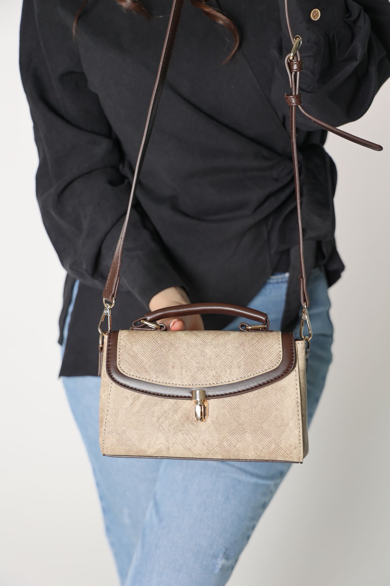 شنطه باللون البيج والبني