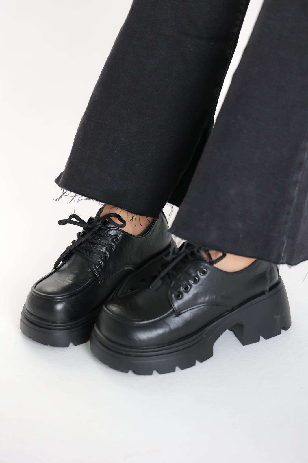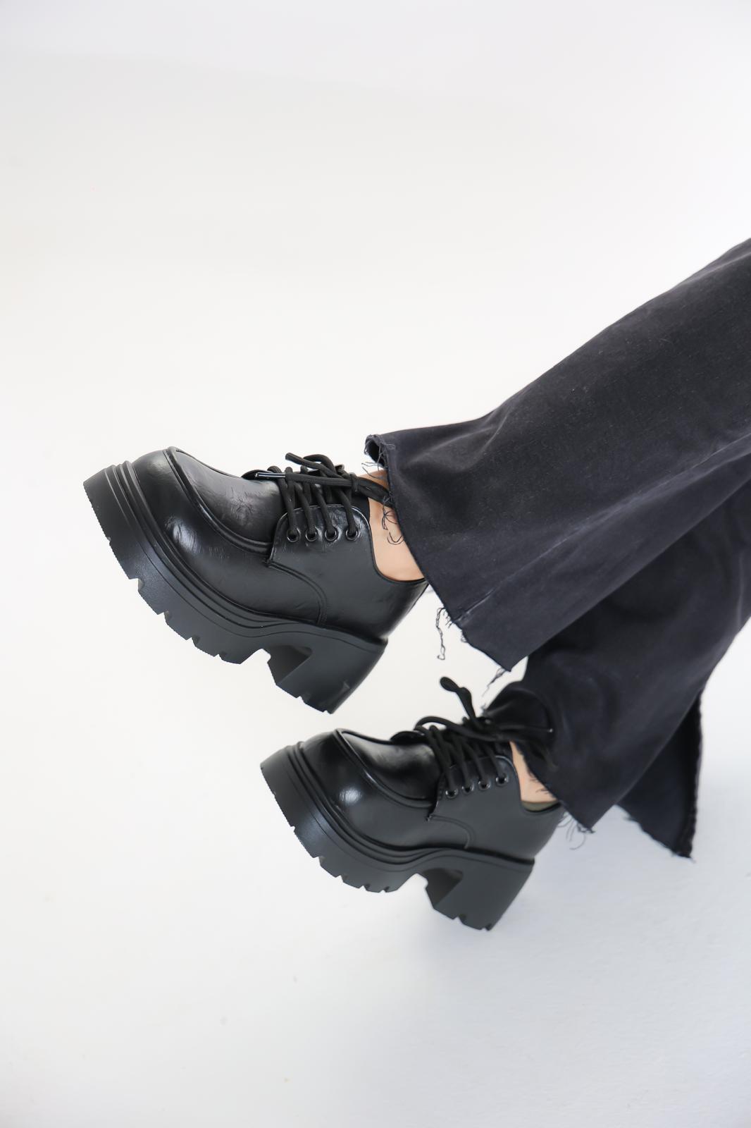 لوفرز كلاسيك بكعب سميك وعالي-جلد لامع لون اسود