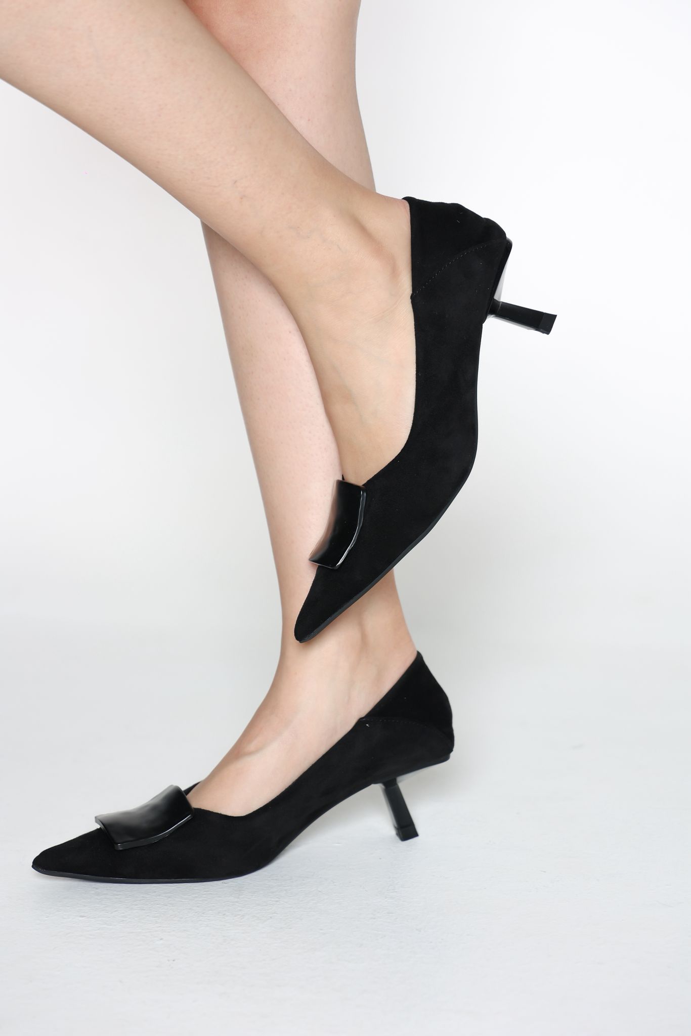 كعب اسود مخمل بارتفاع 4 سم متوفر باللونين البني والاسود