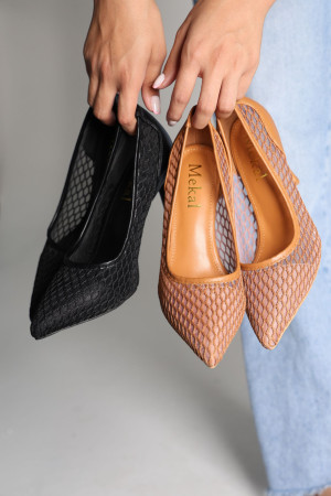 كعب باللون البني الكاراميل بارتفاع 9 سم