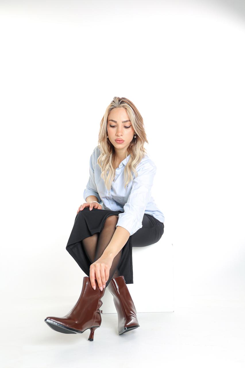 جزمه بكعب رفيع رسمي وكاجوال متوفره باللونين البيج والبني