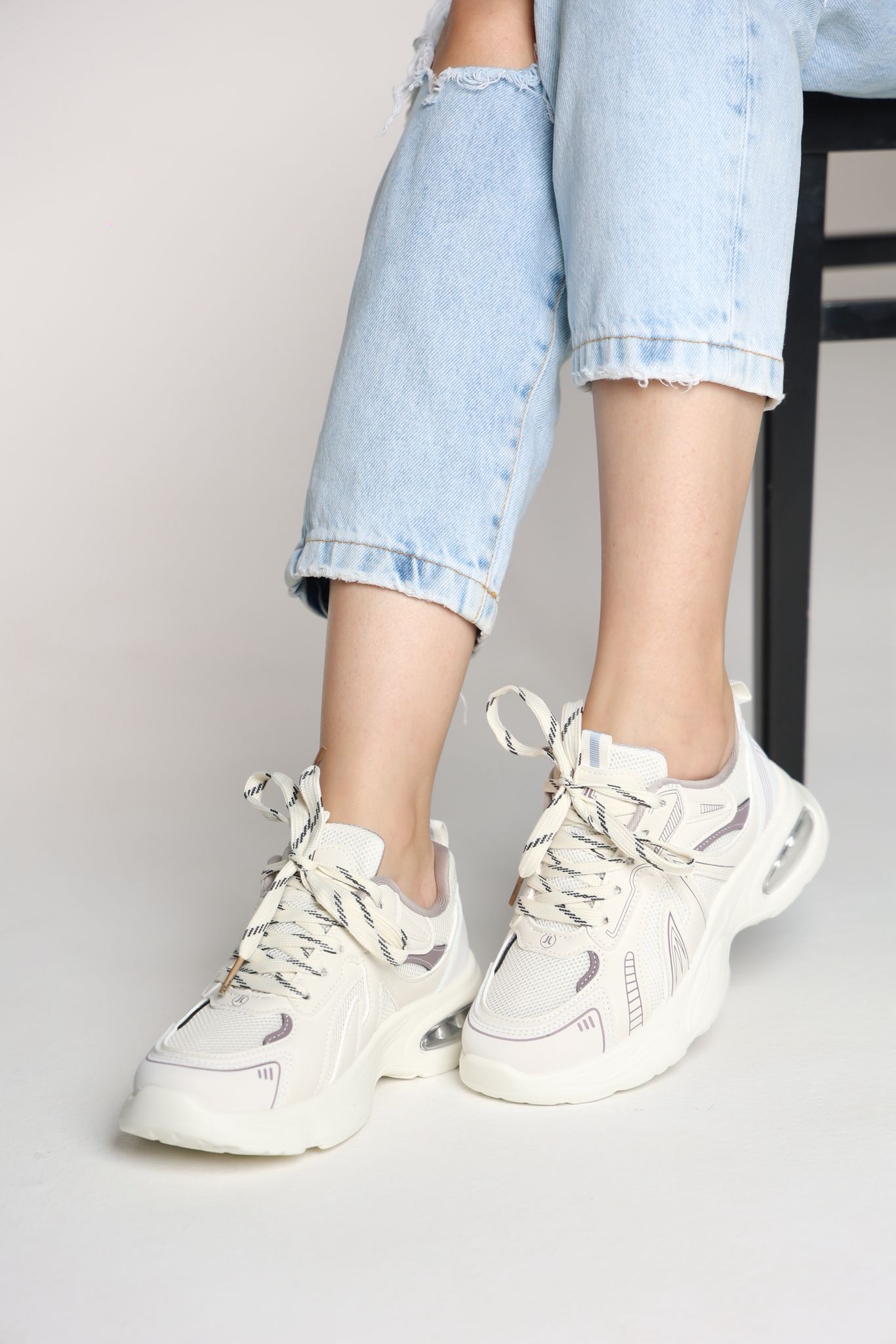 بوت أنيق بلون كريمي ناعم يمنح مظهرًا هادئًا وفاخرًا.
