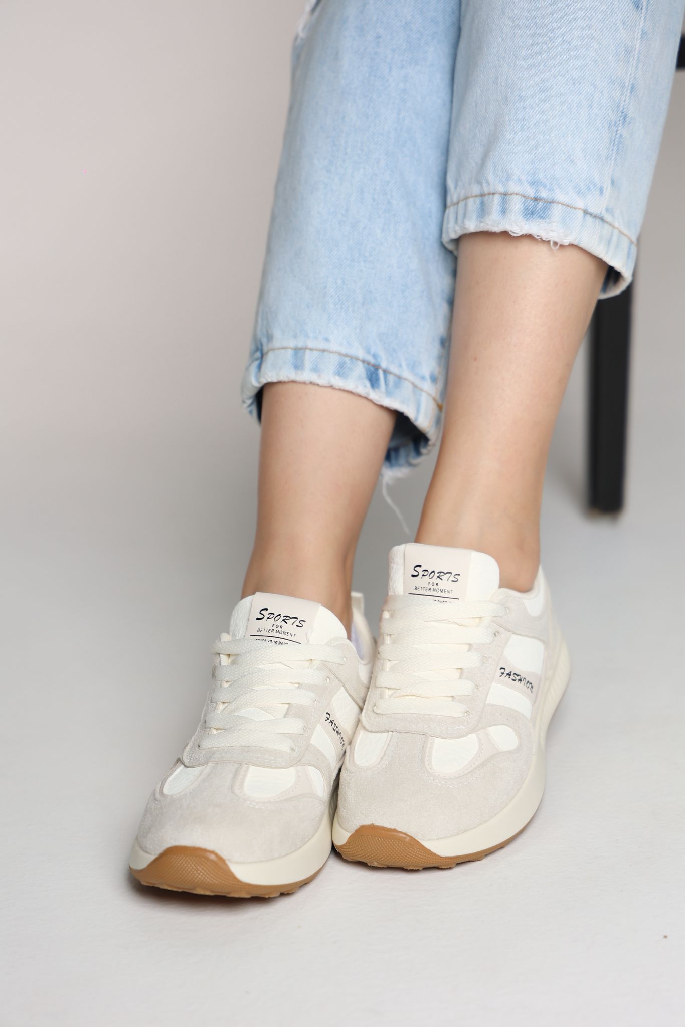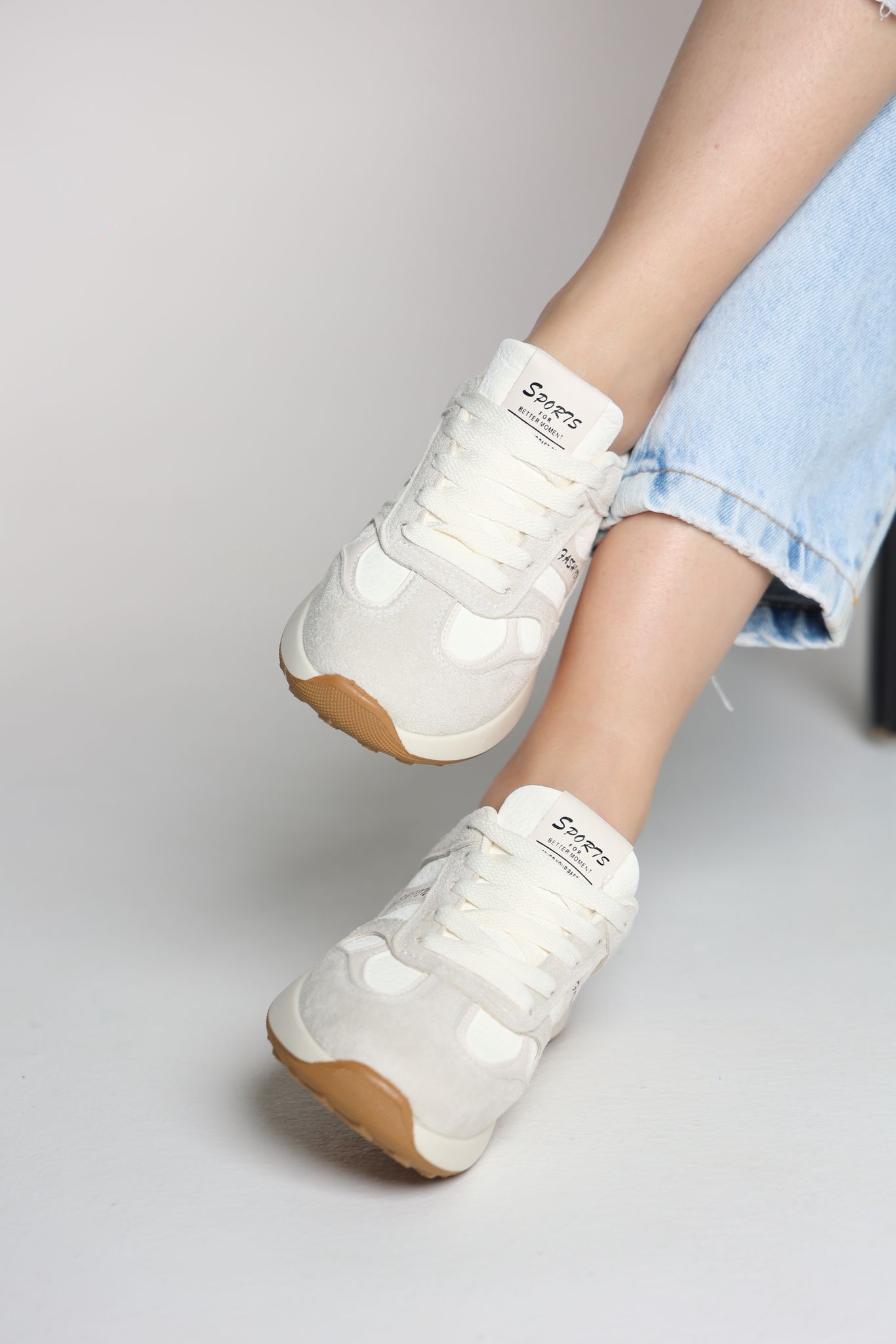 حذاء رياضي بتصميم كلاسيكي أنيق، يجمع بين خامة رمادية ناعمة ولمسات بيضاء تمنحه مظهرًا نظيفًا وعصريًا، مع نعل بلون بني فاتح يضيف لمسة تميّز على الإطلالة.