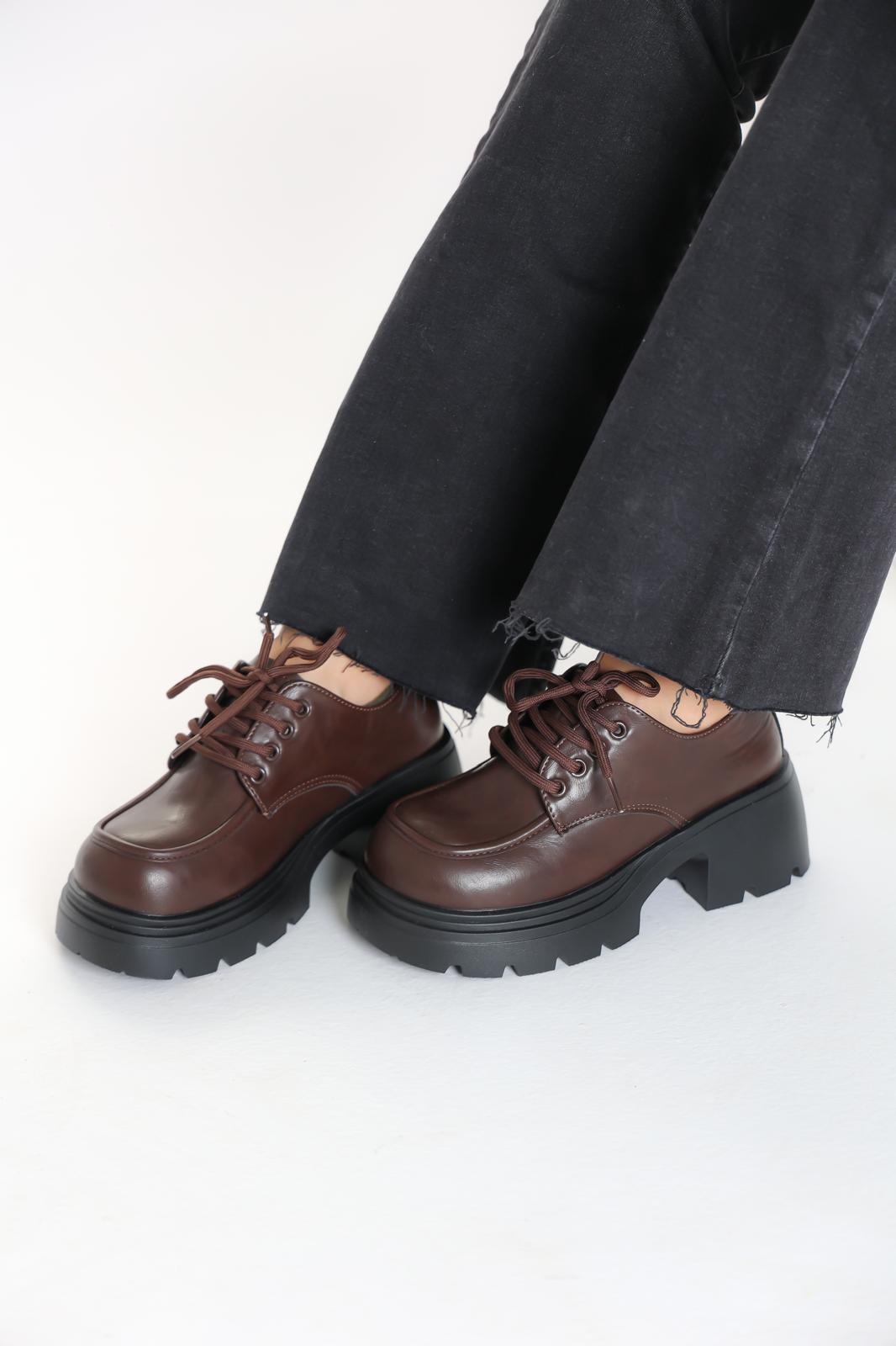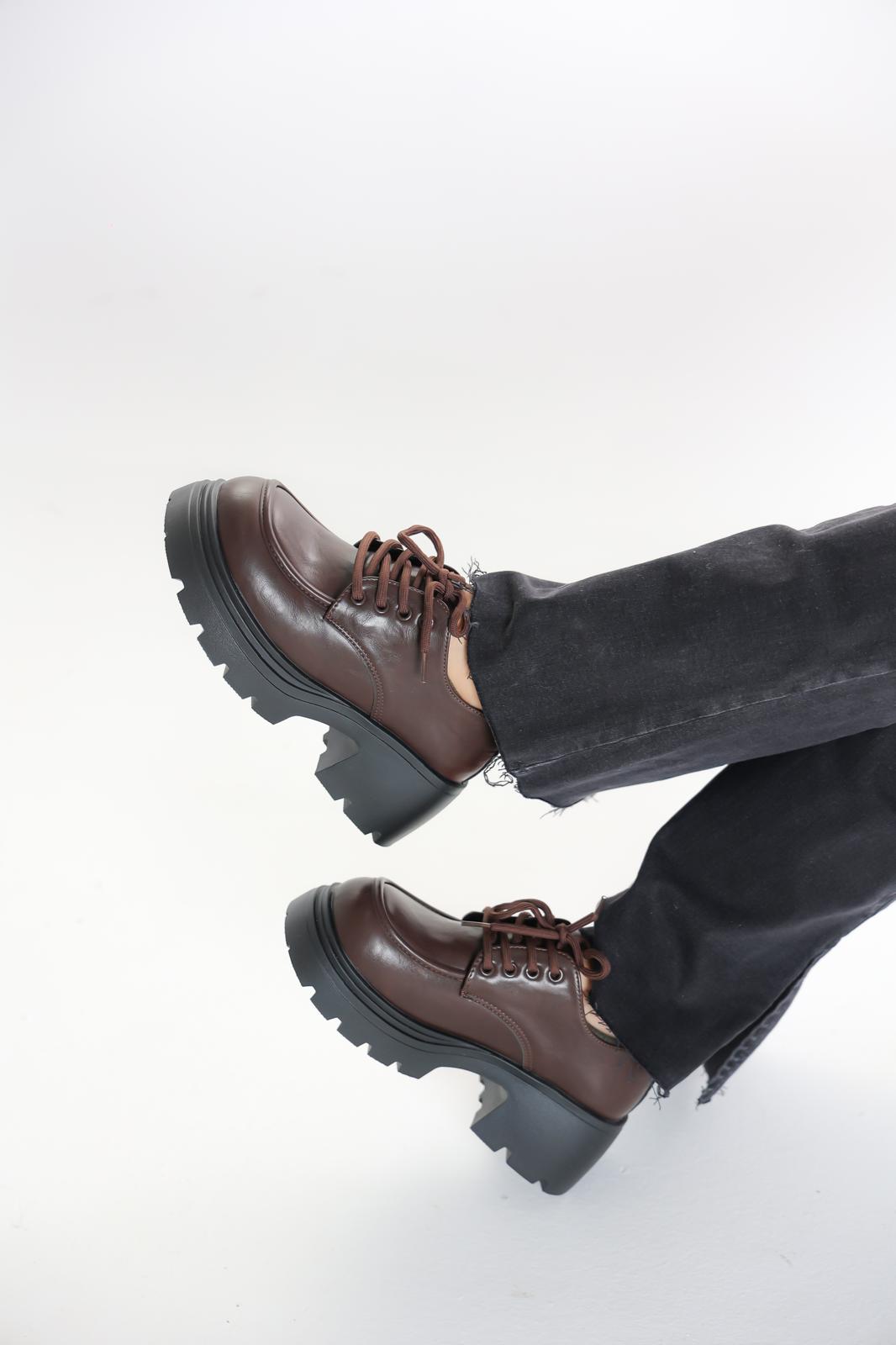 لوفرز كلاسيك بكعب سميك وعالي- جلد لامع لون اسود